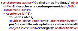Frente a la incursión del discurso artístico en el discurso de la ciencia o en sistemas de codificación duros, Iván Abreu parece abordar este cruce en sentido contrario y nos presenta a las ideas como procesos inevitables, cerrados, programados. ASML (Art Statement Markup Language) se articula como un híbrido entre software art y documentación de discursos curatoriales. Partiendo de lenguajes de programación que hacen uso de etiquetas, Abreu desarrolla un software para facilitar el análisis y la comprensión de estos textos críticos sobre el arte por parte de la computadora. Selecciona textos de teóricos como Cuahutemoc Medina, Osvaldo Sánchez o Priamo Lozada, para luego incorporarlos a su programa etiquetando los distintos fragmentos que los componen. En ASML , estos textos codificados en diagramas de flujo, generan nuevas gramáticas que subvierten la relación entre obra y análisis, autor y crítico: la obra como herramienta de análisis del sistema del que forma parte.