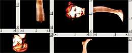 De los autómatas poetas pasamos en la obra Cyberdance, a los autómatas danzantes. Este trabajo de Ricardo Barreto y Paula Perissinotto nos propone una danza partida fragmentada e imposible en un espacio dividido y al mismo tiempo multiplicado. Cyberdance consiste en la combinación y re-combinación de los elementos que representan las diferentes partes del cuerpo humano. Un maniquí fue fotografiado como modelo en distintas posiciones y luego estas imágenes convertidas en animaciones permitiendo al usuario combinar unas con otras, y también relacionarlas con las distintas nomenclaturas de la danza, los nombres de las posturas y las posiciones de ballet clásico. En una página dividida en marcos conteniendo fragmentos del maniquí, podemos ver girar su cabeza, piernas torso y brazos a la vez que nos permite volver a subdividir en sucesivos clicks cada marco componiendo una muñeca aberrante cuyos fragmentos danzan en forma independiente y por otro lado, silenciosa. No hay música ni ritmo, del mismo modo que no hay espacio. Es una danza digital, una danza en la que el tiempo y el espacio han sido convertidos en tablero.